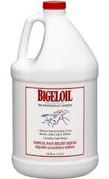 Bigeloil Topical Pain Relief for Horses Gallon size. Bigeloil is topical Pain relief liquid to be used on bruises, minor injuries, superficial wounds, pain and stiffness caused by exposure, sprains or strains.