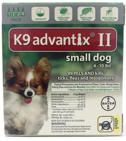 K9 Advantix II for Small Dogs - Green (Under 10 lbs) 4 Pack