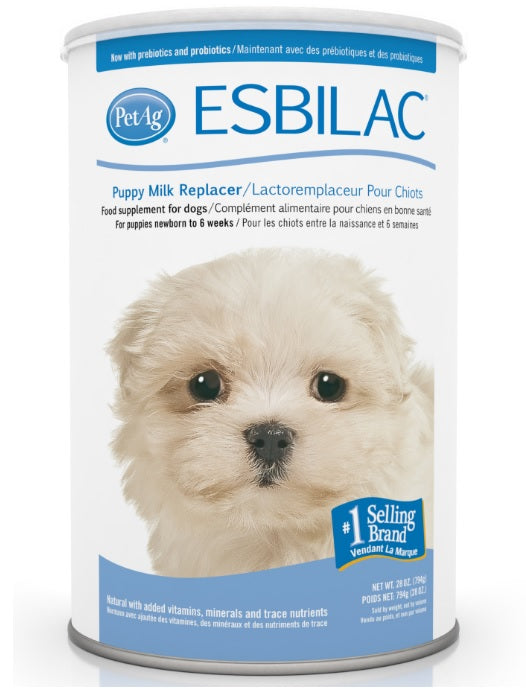 Esbilac Milk Replacer 28oz FREE PRIORITY SHIPPING. Esbilac is a complete food source for orphaned, rejected or nursing puppies needing supplemental feeding. It is also great for growing puppies or adult dogs that are stressed and require a source of highly digestible nutrients. Esbilac is a complete dietary supplement for puppies fortified with vitamins and minerals. Esbilac s life saving formula closely matches the mothers milk in protein and energy.