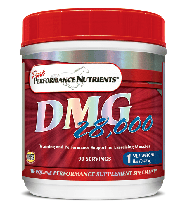 DMG, or N, N-Dimethylglycine, is a nutrient common to many grains and meat. DMG has been found to support the immune system and oxygen transport to into the cells. DMG 28,000™ is pure DMG without dextrose or other sugars and fillers. DMG provides training and performance support for exercising muscles. For Equine use only.