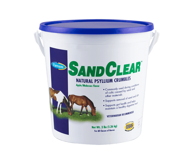 Contains natural psyllium seed husk, a natural fiber that increases ration bulk. Recommended by veterinarians, psyllium absorbs water in the intestines to form a gel-like substance which increases bulk, softens stools and keeps things moving smoothly through the intestinal tract. Highly palatable apple and molasses flavored pellets mix easily with feed. For horses of all ages, including young foals. From Farnam